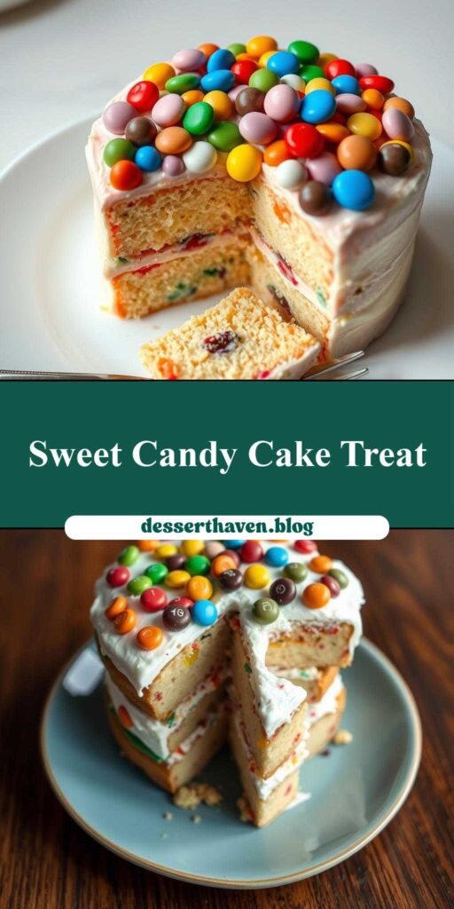 What happens when you combine moist vanilla cake with a colorful mix of candy toppings? This stunning homemade dessert features layers of sweet treats on top and bottom, all held …