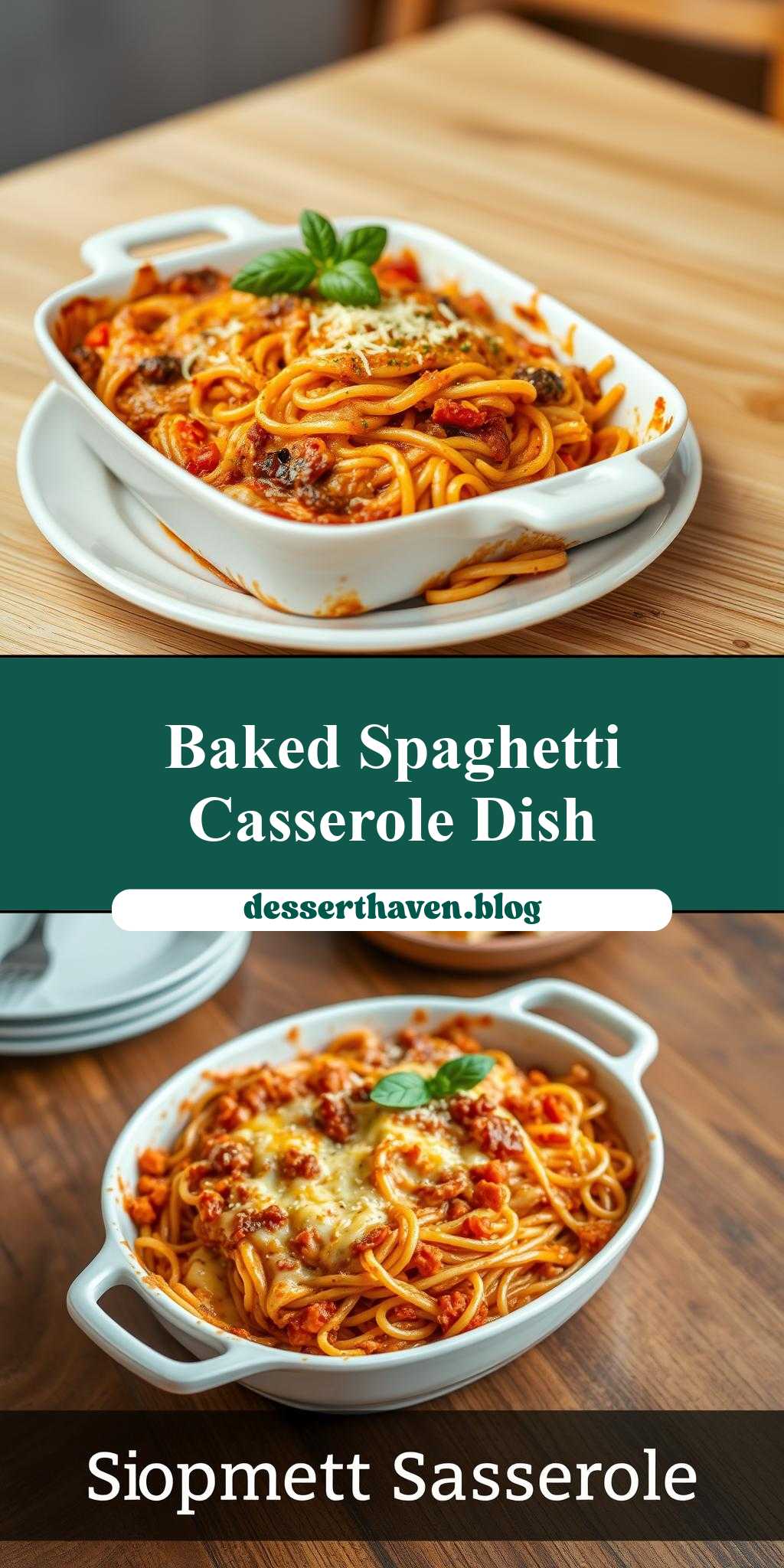 A hearty, flavorful baked spaghetti casserole made with ground beef, tomato sauce, and a blend of cheeses, perfect for family dinners or special occasions.
