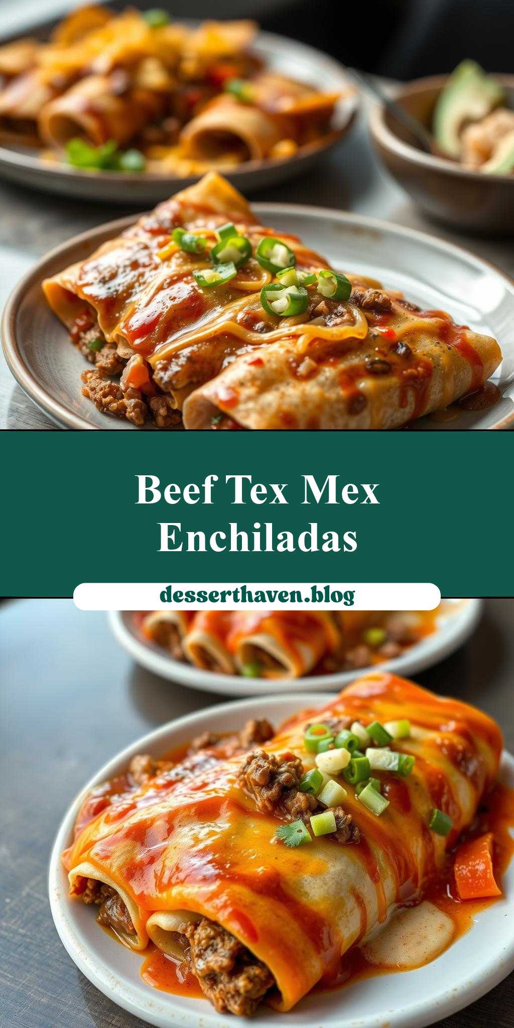 two plates filled with tex – mex beef enchiladas