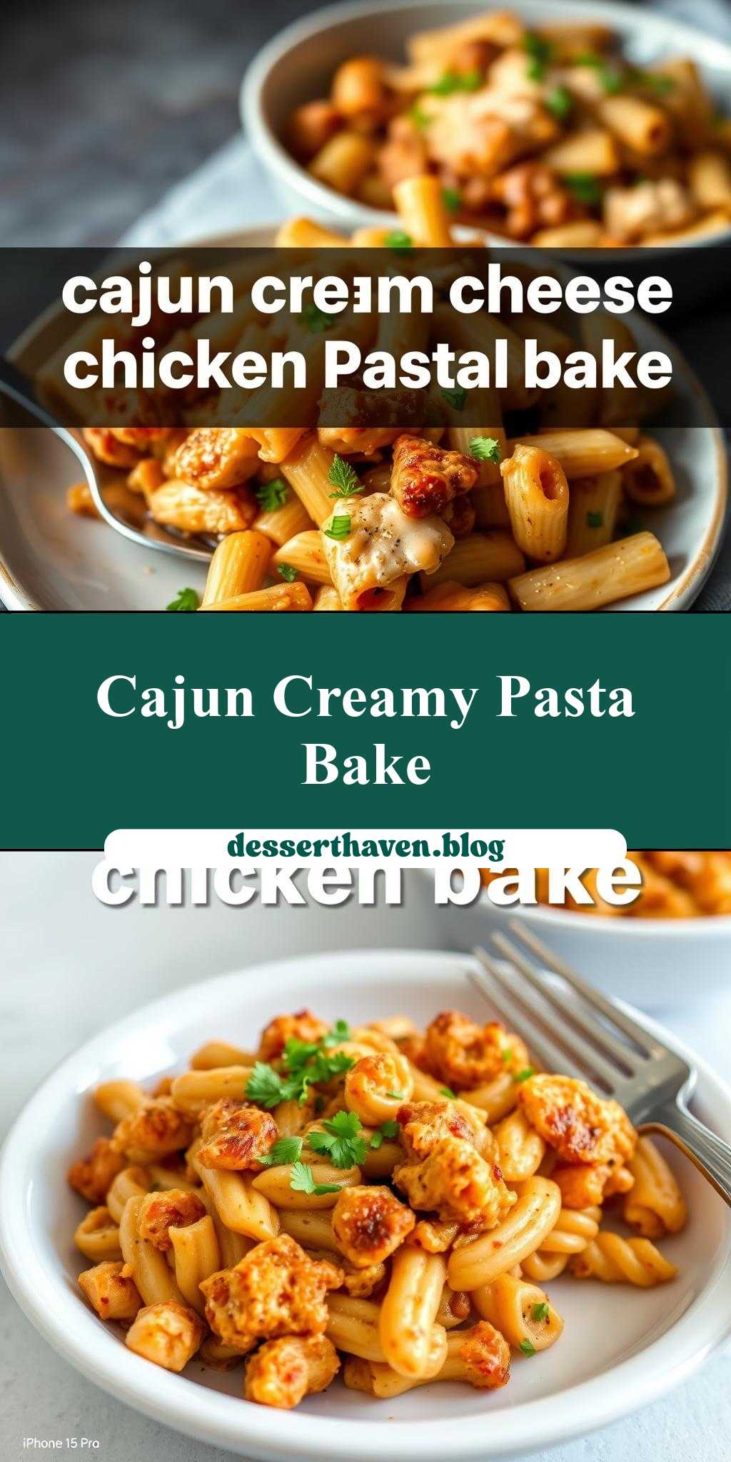 two bowls of cajun cream cheese chicken pasta bake with text overlay that reads cajun cream cheese chicken pasta bake
