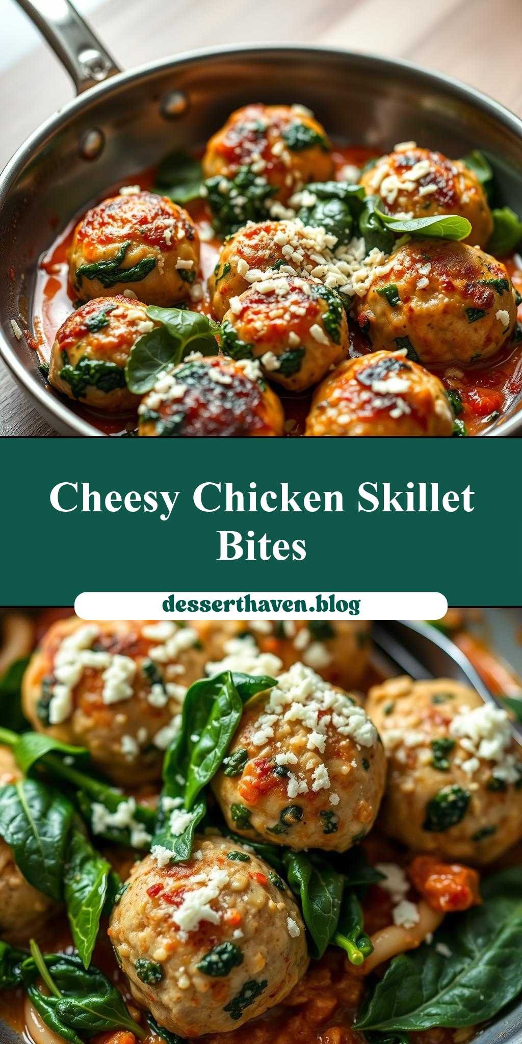 What’s the secret to a weeknight dinner that’s both easy and impressive? Chicken ricotta meatballs cooked in a skillet with fresh spinach and melted cheese on top make for a quick homemade favorite – save this idea for a delicious family dinner tonight
