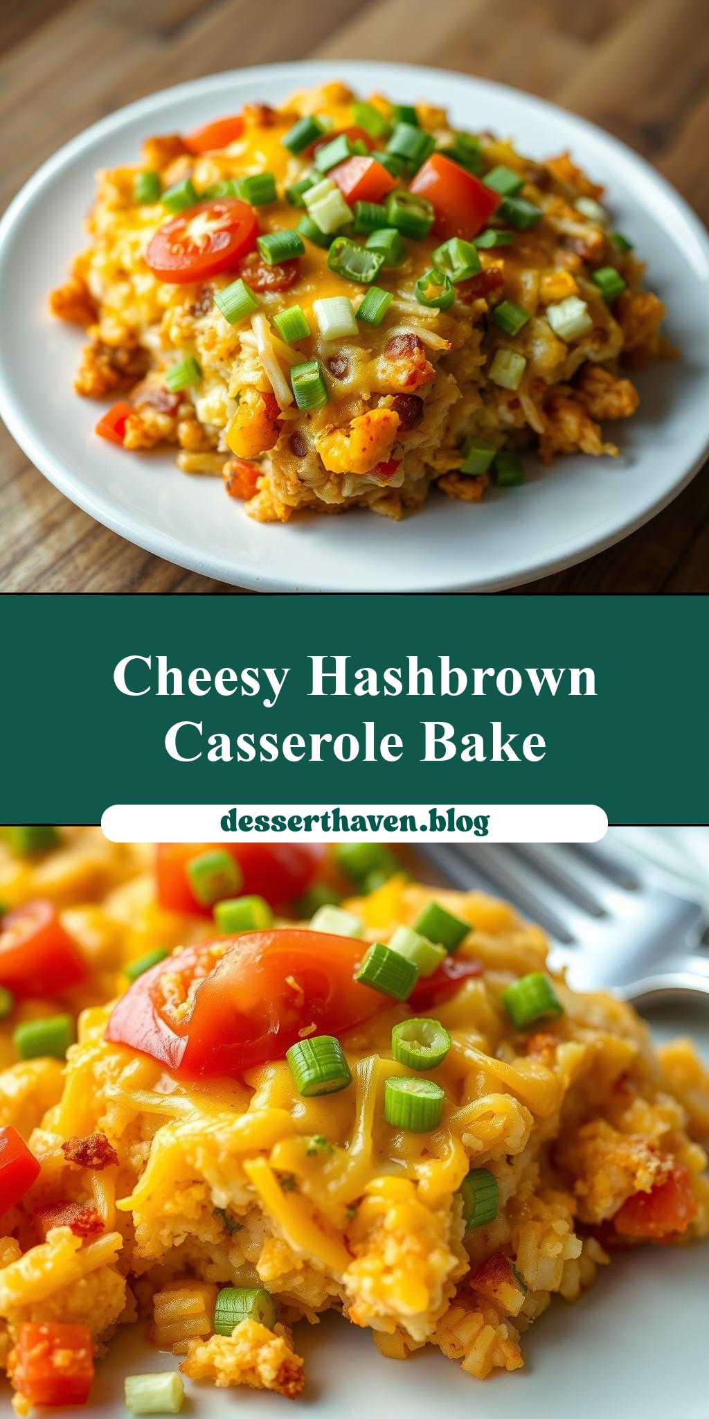 A delicious and easy-to-make hashbrown casserole filled with cheese, tomatoes, and green onions, perfect for any occasion.