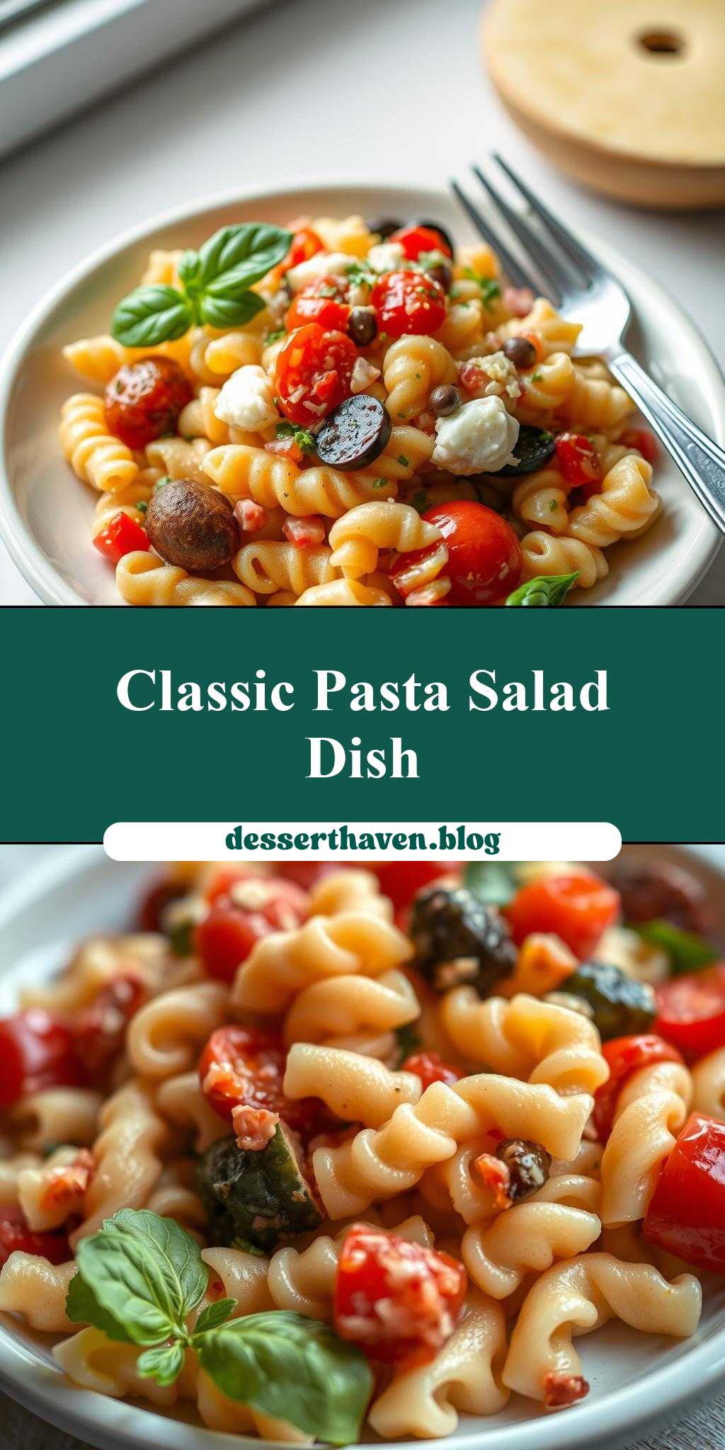 A classic pasta salad recipe with a perfect balance of pasta, vegetables, and tangy dressing.