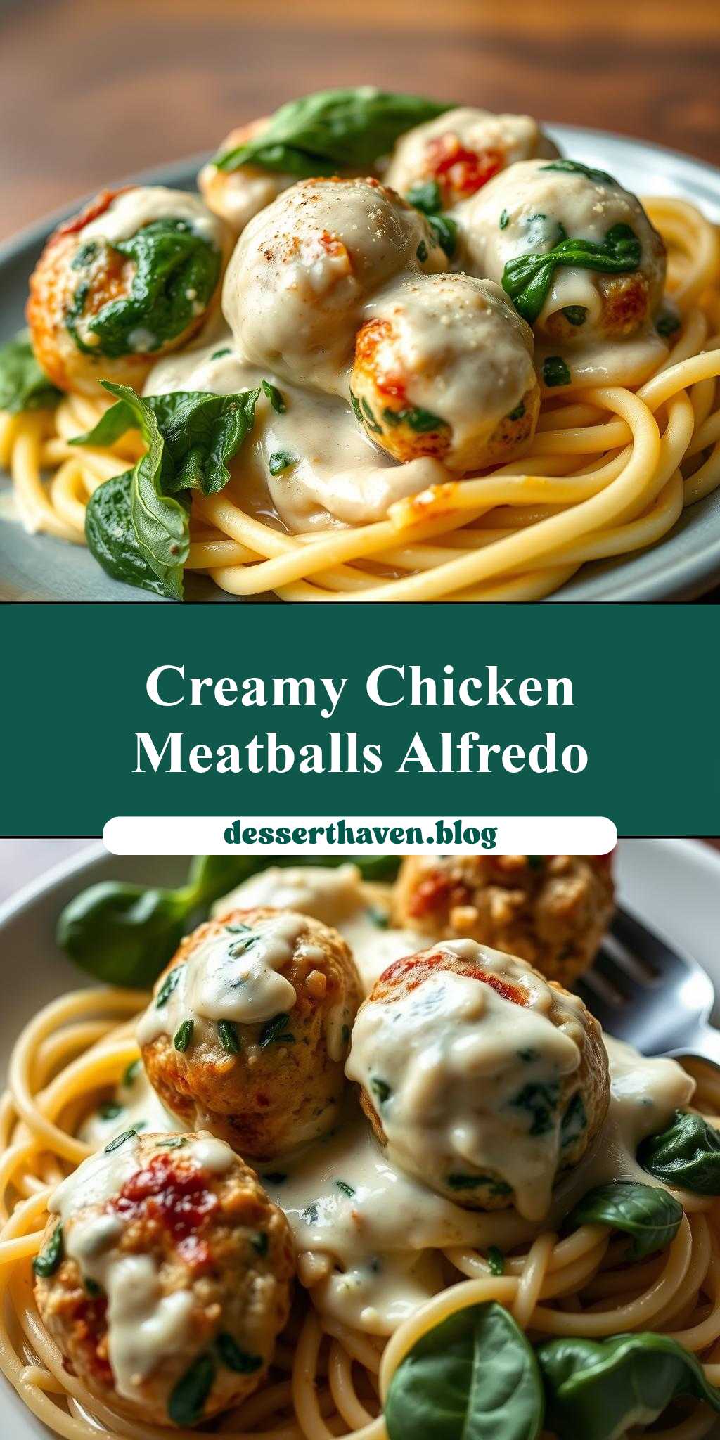 A comforting and elegant dish featuring chicken and ricotta meatballs served in a rich spinach Alfredo sauce, perfect for weeknight dinners or special occasions.
