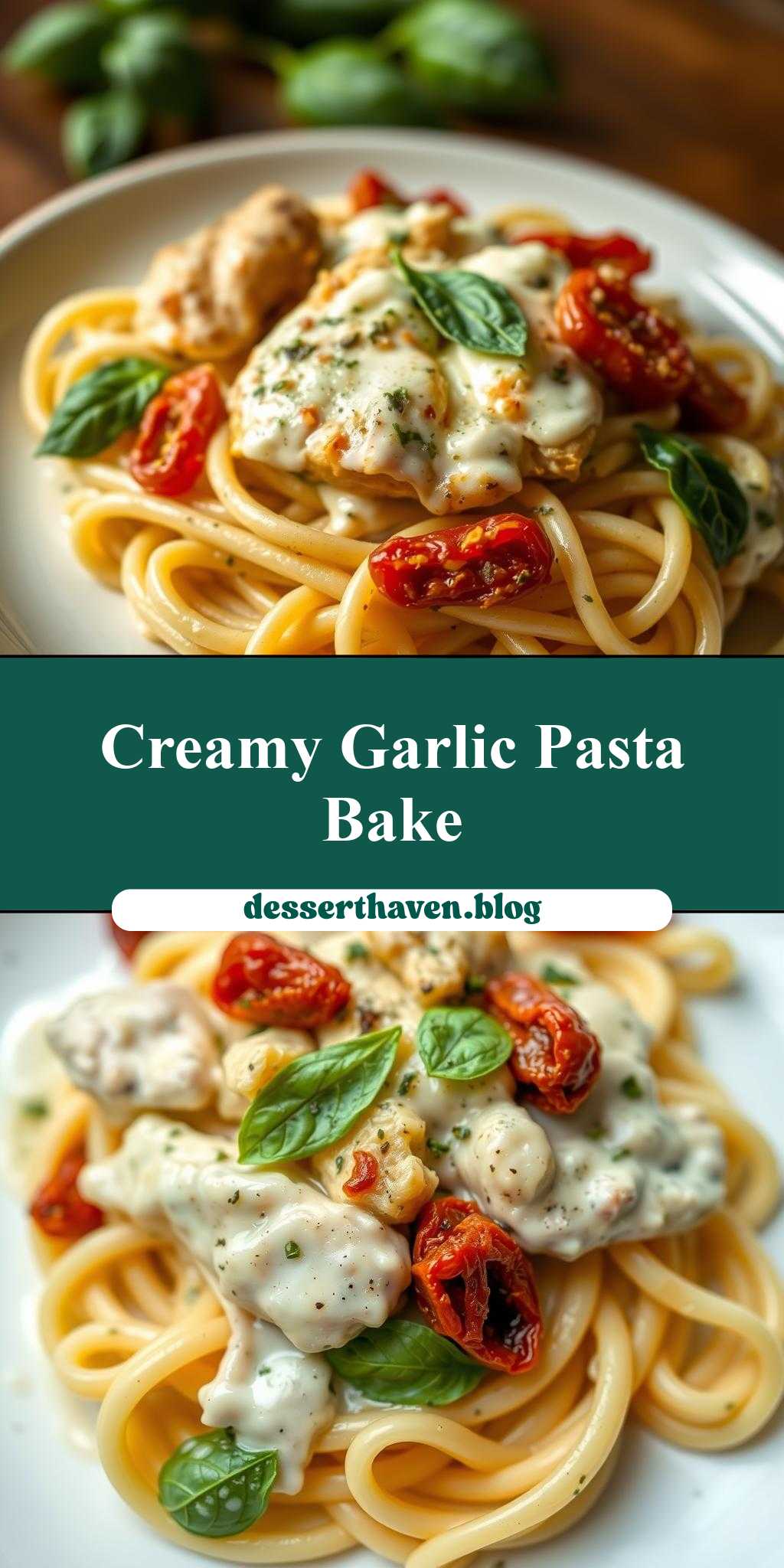 A creamy and flavorful pasta dish combining chicken, garlic basil cream sauce, sun-dried tomatoes, and mozzarella cheese.