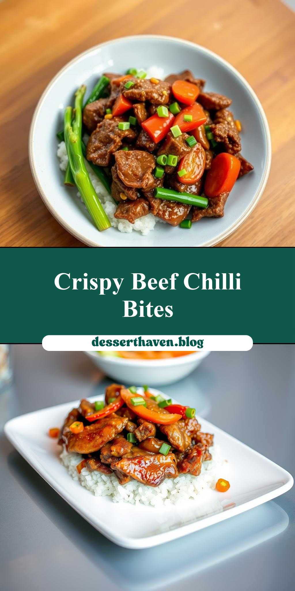 5Serve the Crispy Chilli Beef hot, garnished with sliced green onions and sesame seeds.