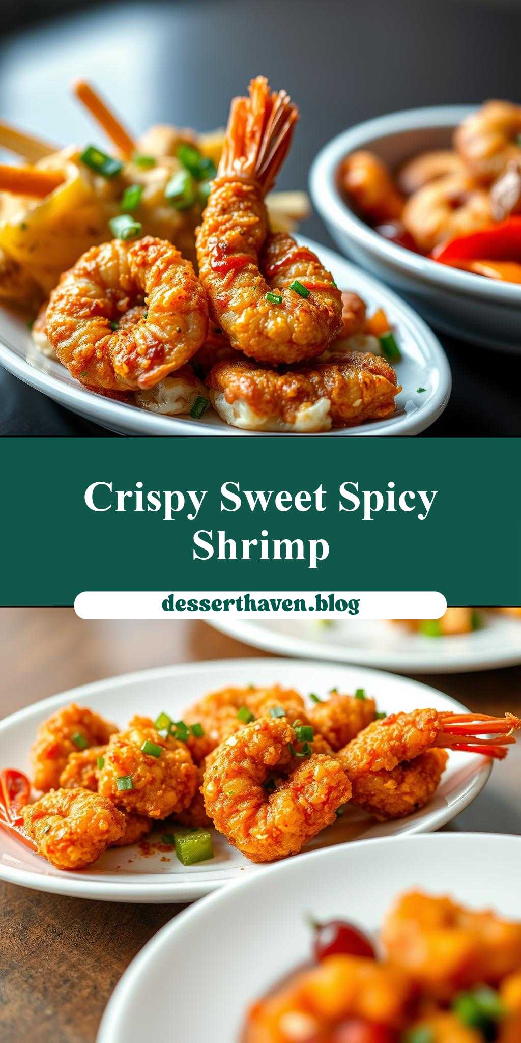 - Step 4: To serve, place the crispy fried shrimp on a plate or platter and drizzle with the sweet and spicy sauce. Garnish with sliced green onions and sesame seeds, if desired.