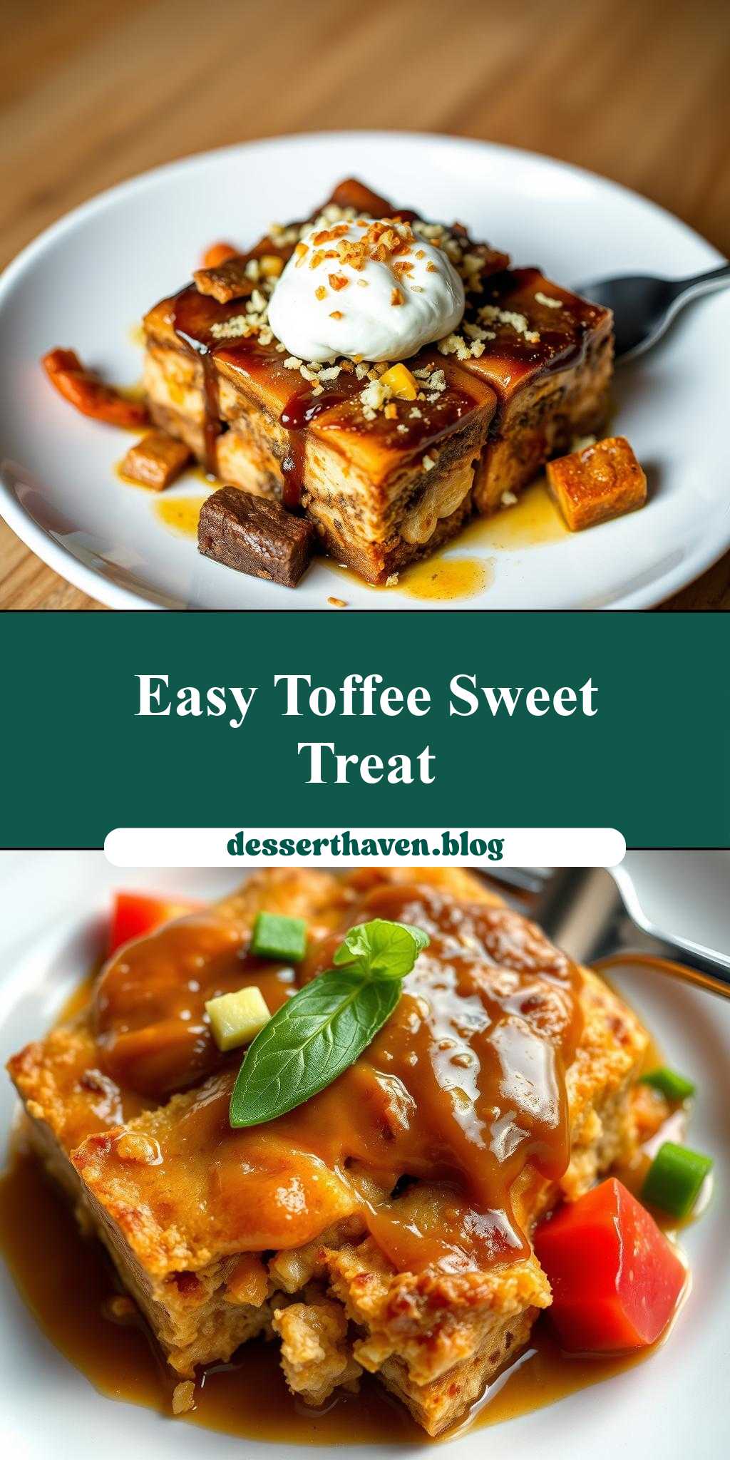 - To make the toffee more visually appealing, try adding a sprinkle of sea salt or a drizzle of chocolate glaze on top. This will add a touch of elegance and sophistication to the dish.