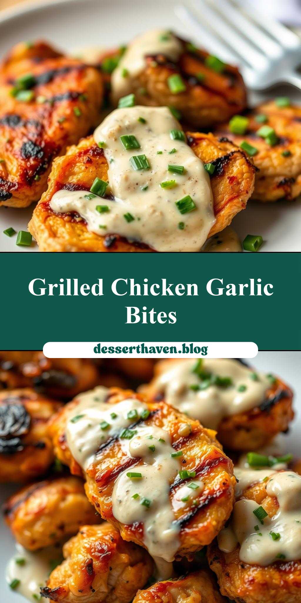 4Serve the grilled chicken bites with the creamy garlic sauce spooned over the top. Garnish with parsley or chives for a fresh touch.