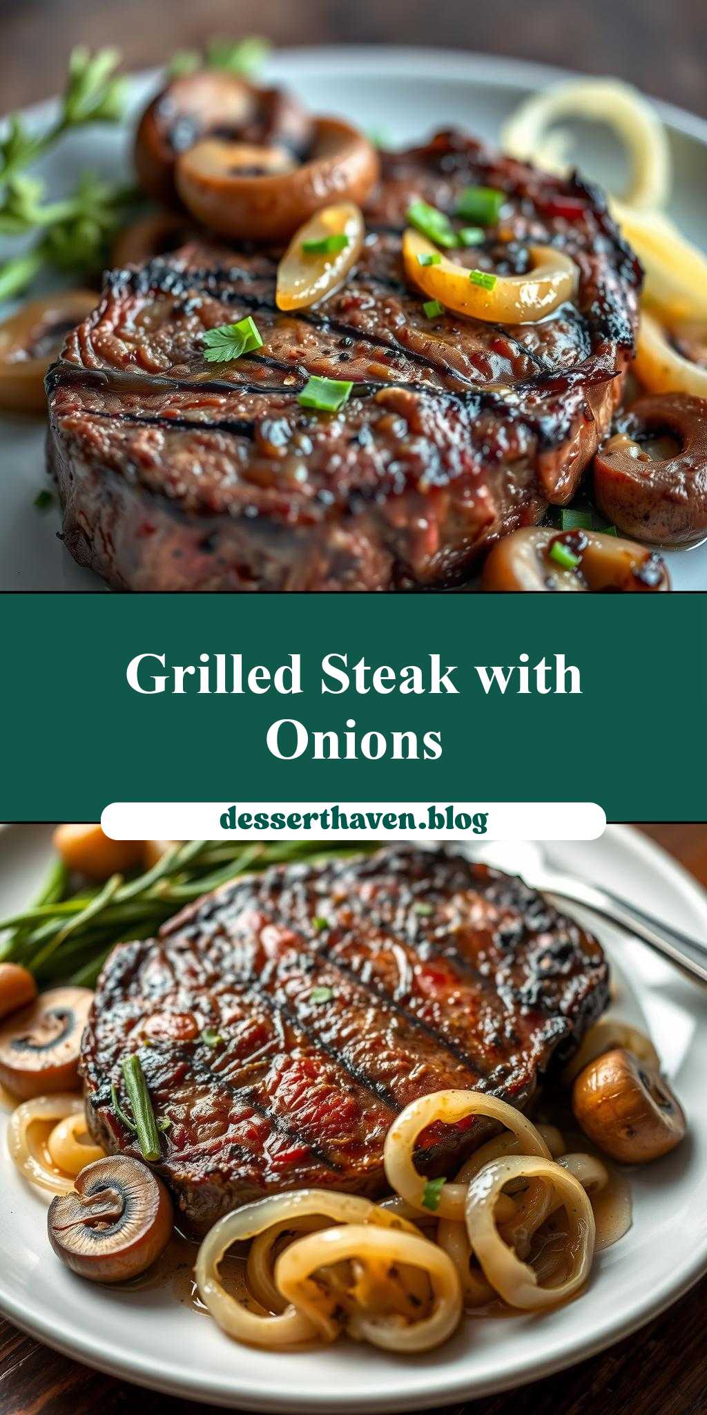 4Serve the steak topped with the onion and mushroom mixture, garnished with fresh herbs if desired.