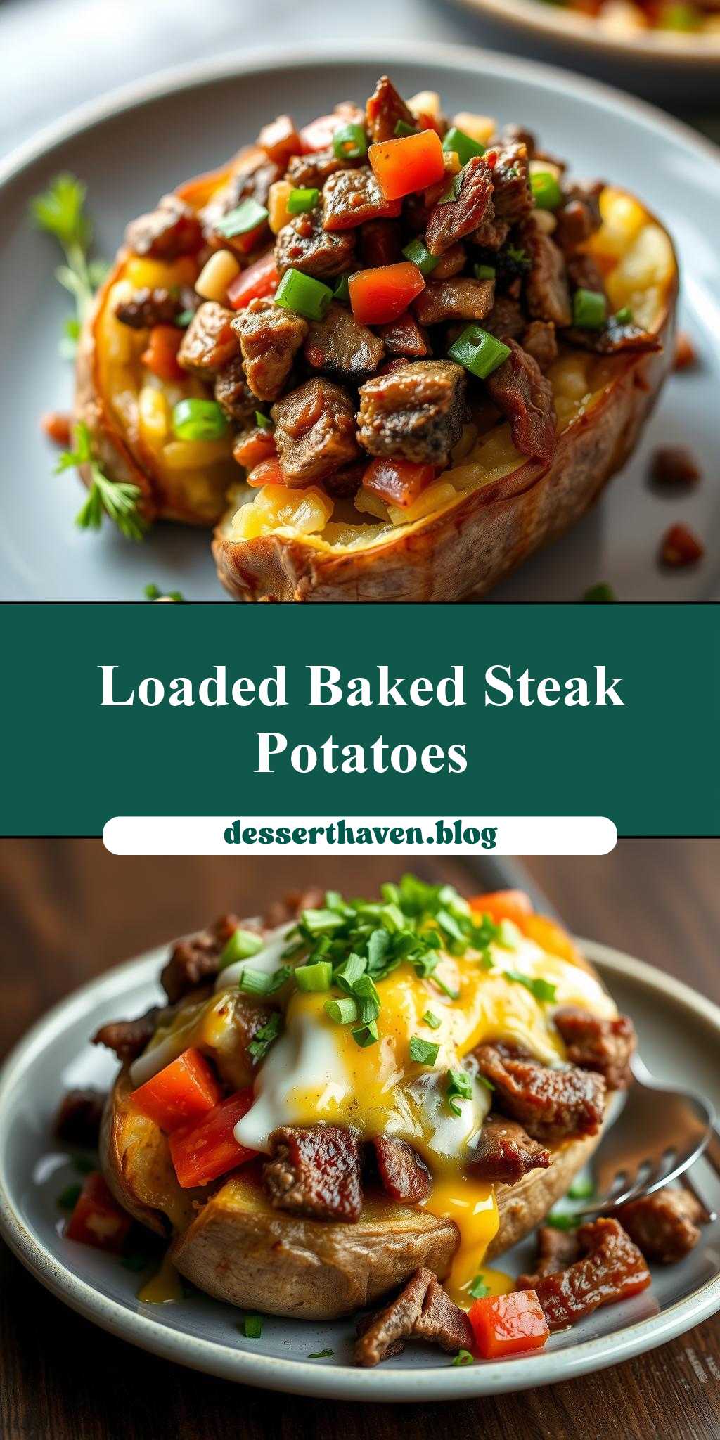 What makes a perfect weeknight dinner? A hearty, homemade steak-loaded baked potato is the answer, with tender steak and fluffy potatoes. This easy recipe is a family favorite, loaded with cheesy goodness and savory flavor. Save this idea for a quick and delicious meal solution.