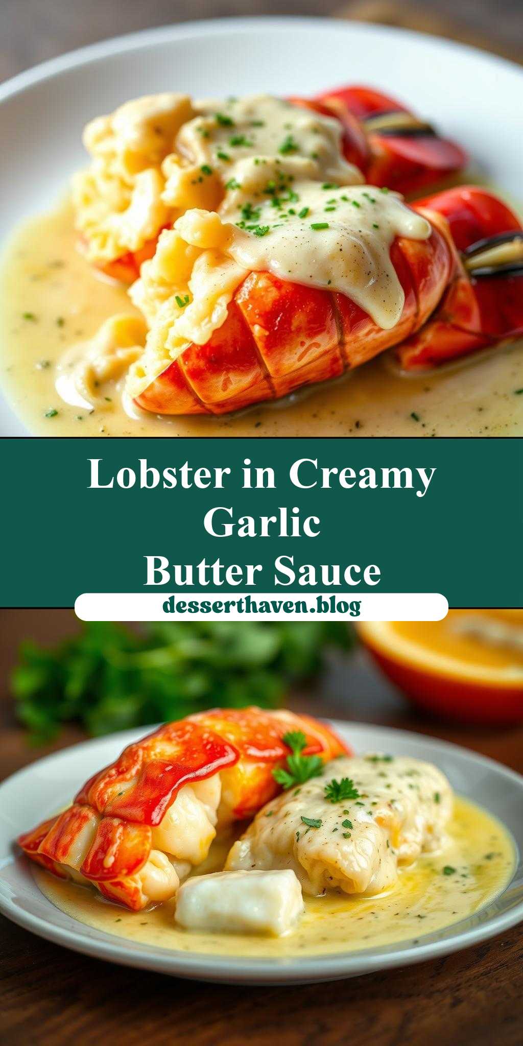 A decadent dish of lobster tails smothered in a rich, creamy garlic butter sauce, perfect for special occasions or a luxurious treat any time of the year.