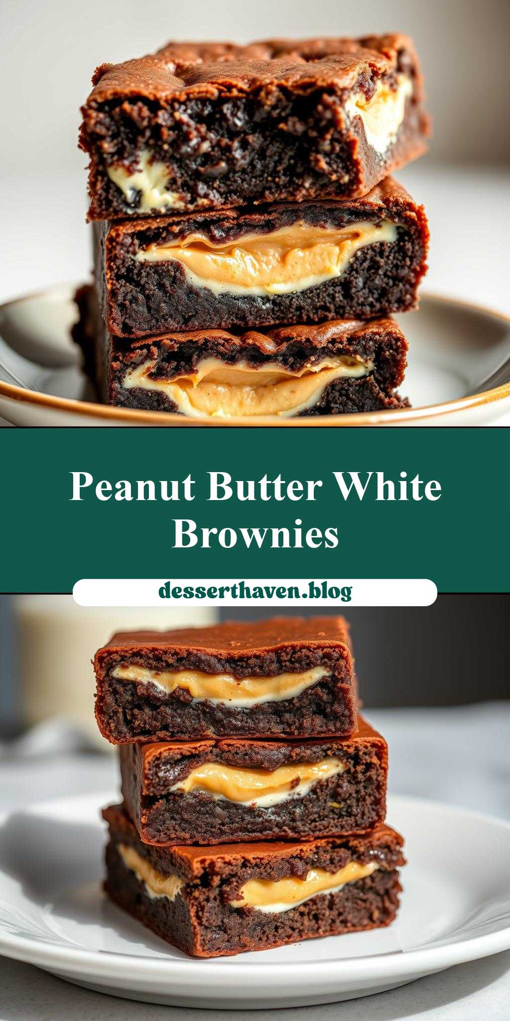 The main ingredients for this recipe include dark chocolate for the brownies, white chocolate for the filling, creamy peanut butter, and heavy cream to enhance the texture of the filling. For the brownies, you can use either dark cocoa powder or melted dark chocolate, depending on what you have available. Peanut butter can be substituted with other nut butters like almond butter for a different flavor profile. Heavy cream can be replaced with half-and-half or a non-dairy milk for a lighter version.