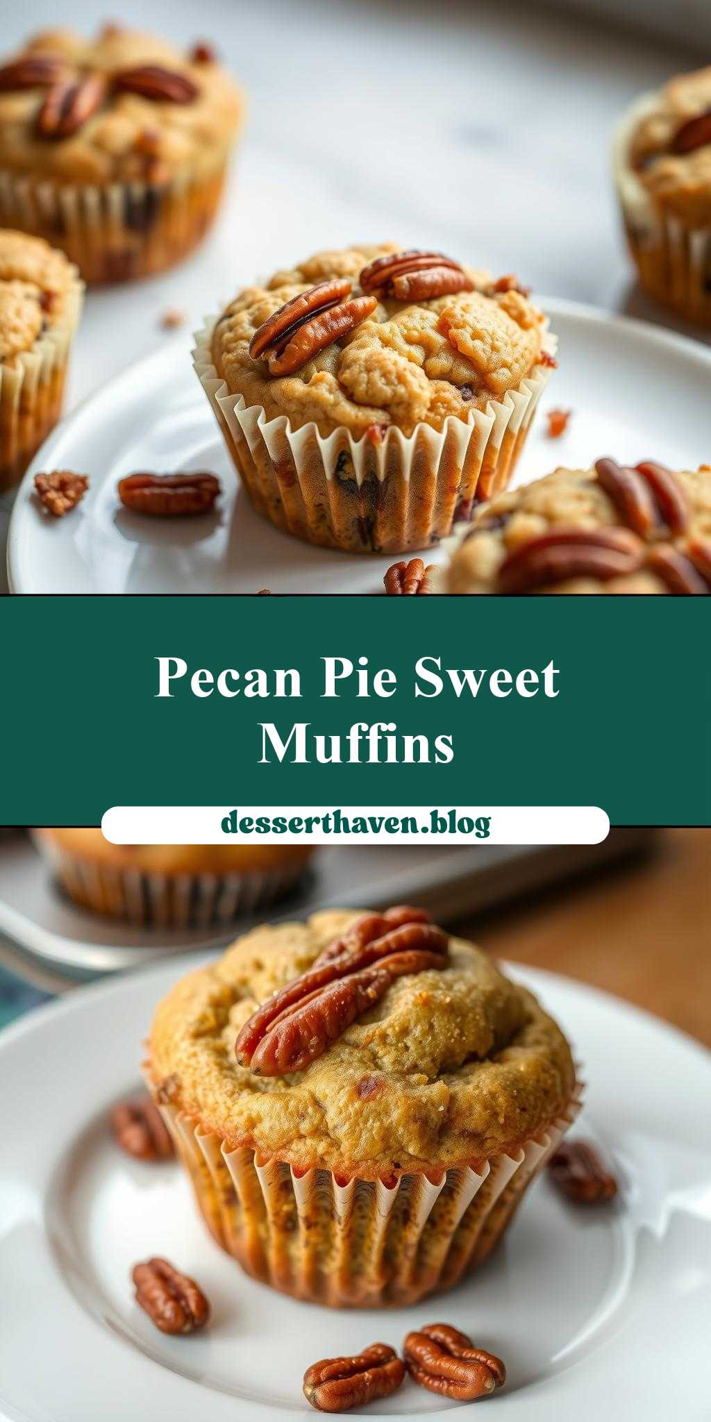 2. Step 2: Divide the batter evenly among the muffin cups. For the pecan pie topping, mix the brown sugar, maple syrup, and melted butter in a small bowl until well combined. Stir in the chopped pecans. Spoon a small amount of the pecan mixture onto the top of each muffin.