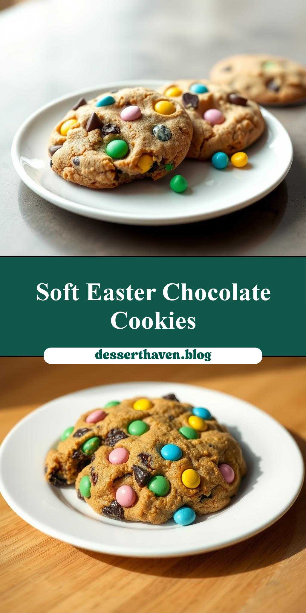 easter chocolate chip cookies recipe on a white plate