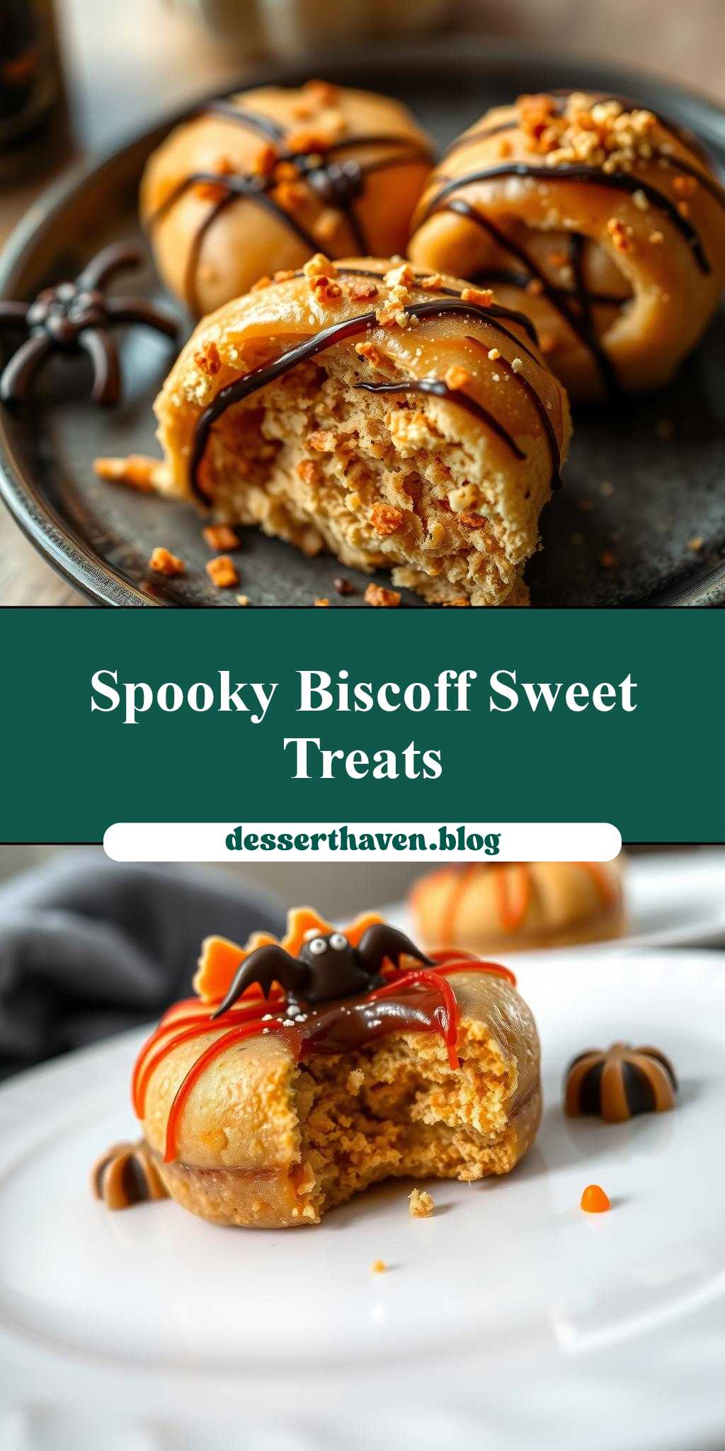 A spooky twist on traditional pastries, filled with Biscoff spread and decorated for Halloween.