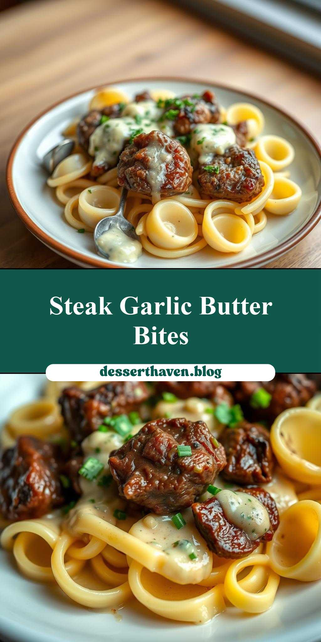 - Step 4: To assemble the dish, add the cooked pasta to the garlic butter alfredo sauce and toss until the pasta is well coated. Return the steak bites to the skillet and toss everything together to combine. Sprinkle with chopped parsley and serve immediately.