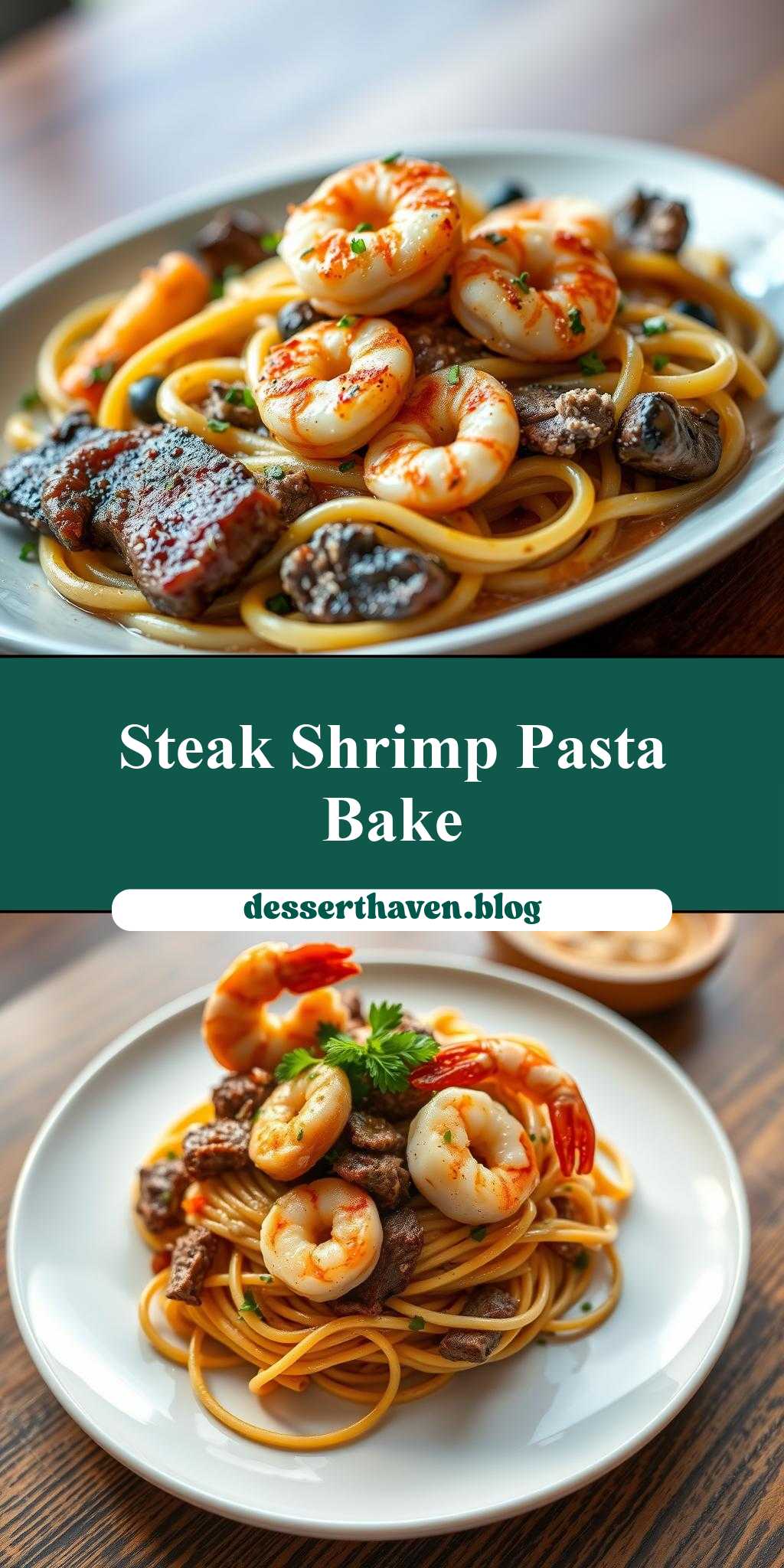 A culinary masterpiece combining tender steak, succulent shrimp, and comforting pasta, perfect for any meal.